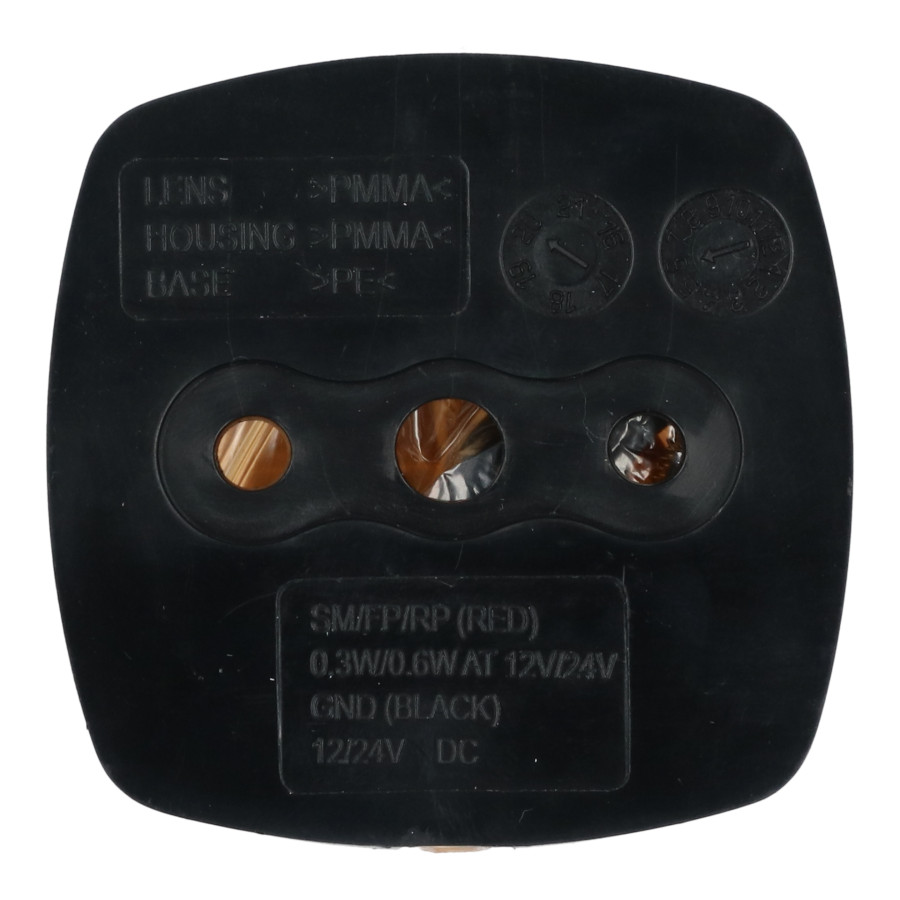 Markeringslampan levereras med monteringsdetaljer och anslutningskablar. LED-lampan har en effekt på 0,3 watt vid 12 volt och 0,6 watt vid 24 volt. Måtten på denna markeringslampa är 50x50x45 mm (LxBxH).