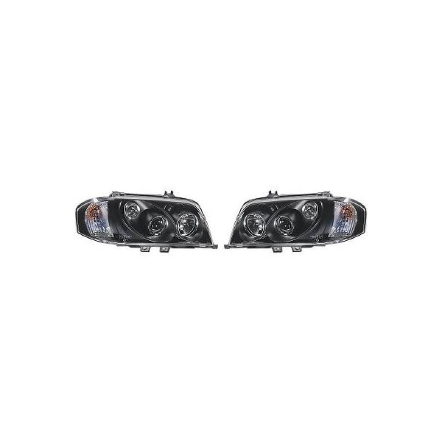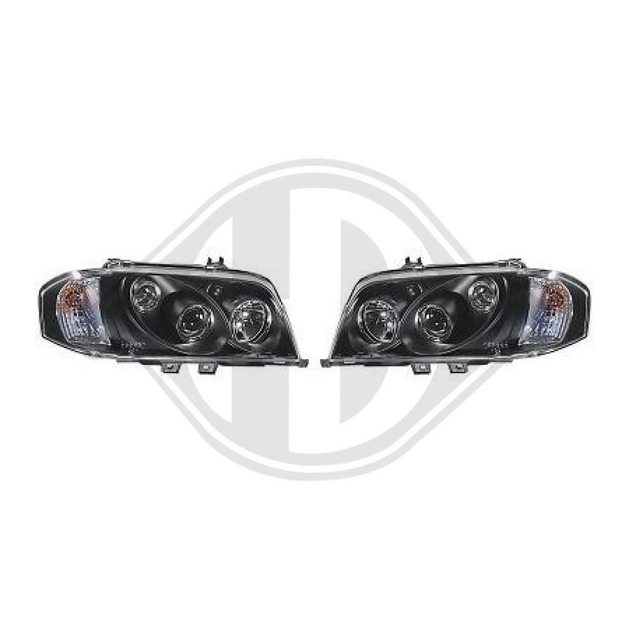 Färg Svart Glasklar Garanti 2 år Applikation Strålkastare sida Uppsättning Lamptyp Halogen Utförande För fordon med strålkastarjustering (mekanisk) Version Angel eyes Lamptyp DE -