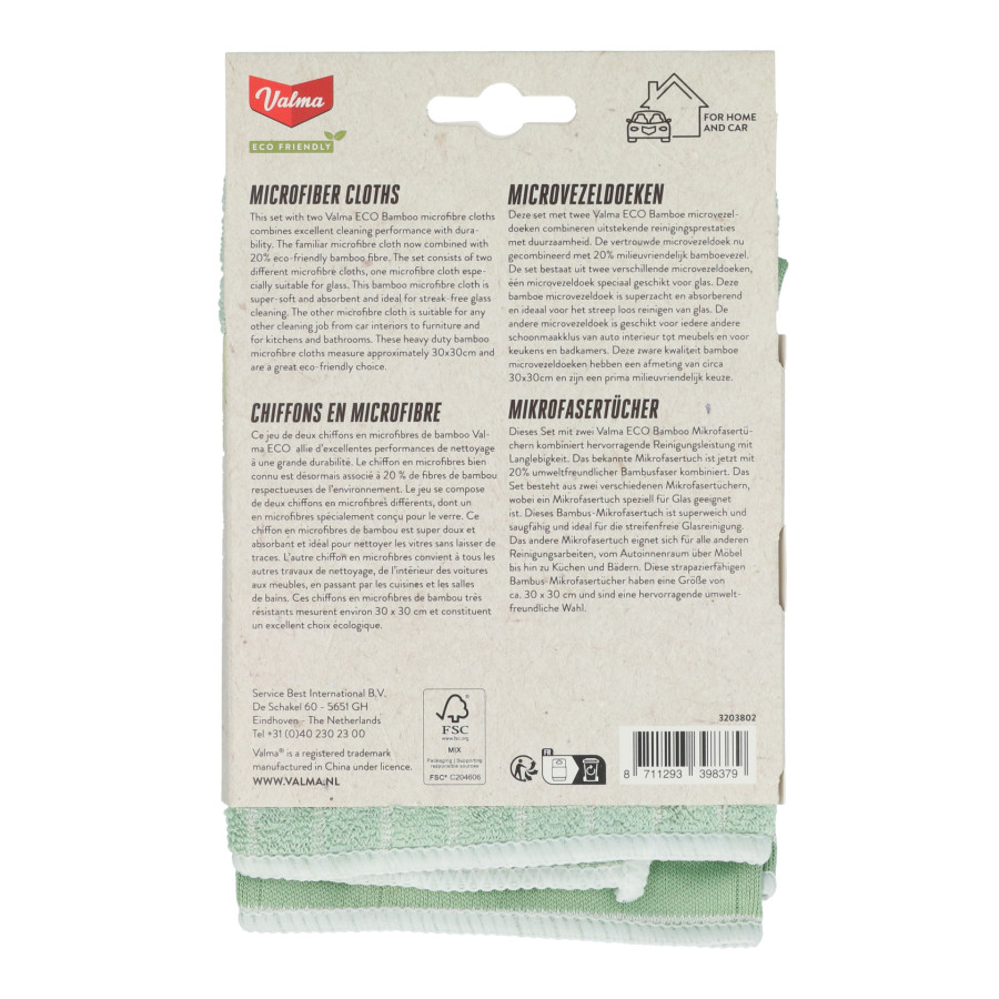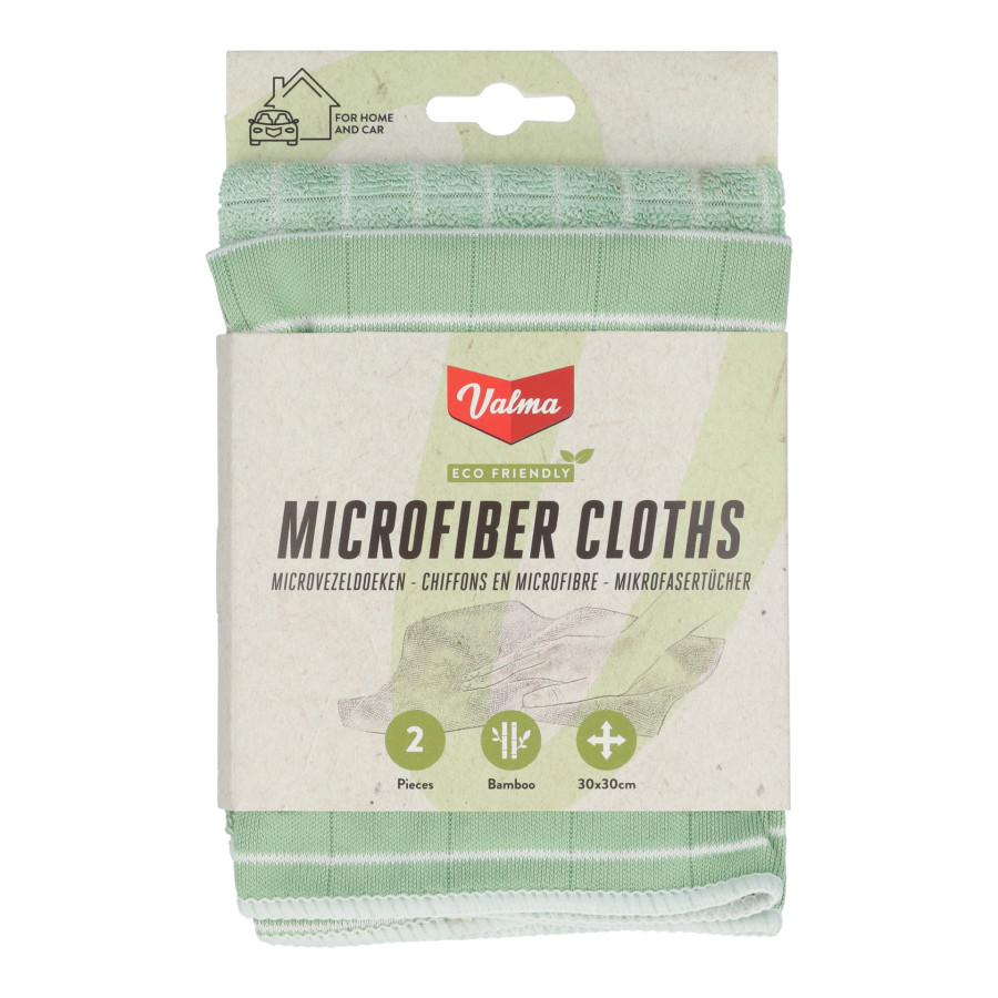 Detta set med två Valma ECO Bamboo mikrofiberdukar kombinerar utmärkt rengöringsprestanda med hållbarhet. Den pålitliga mikrofiberduken är nu kombinerad med 20 % miljövänlig bambufiber!