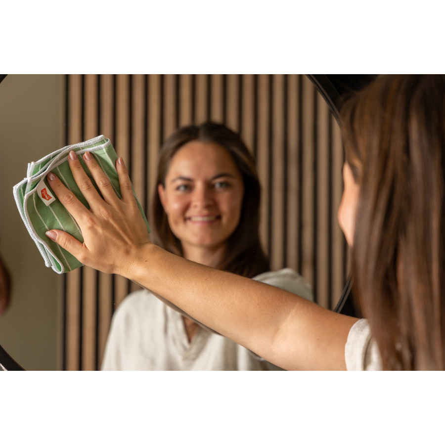Setet innehåller två olika mikrofiberdukar: en speciellt utformad för glas. Denna bambumikrofiberduk är supermjuk och absorberande, perfekt för ränderfri glasrengöring. Den andra mikrofiberduken är lämplig för alla andra rengöringsuppgifter, från bilinredning till möbler, kök och badrum. Dessa kraftiga bambumikrofiberdukar mäter cirka 30x30 cm och är ett utmärkt miljövänligt val.