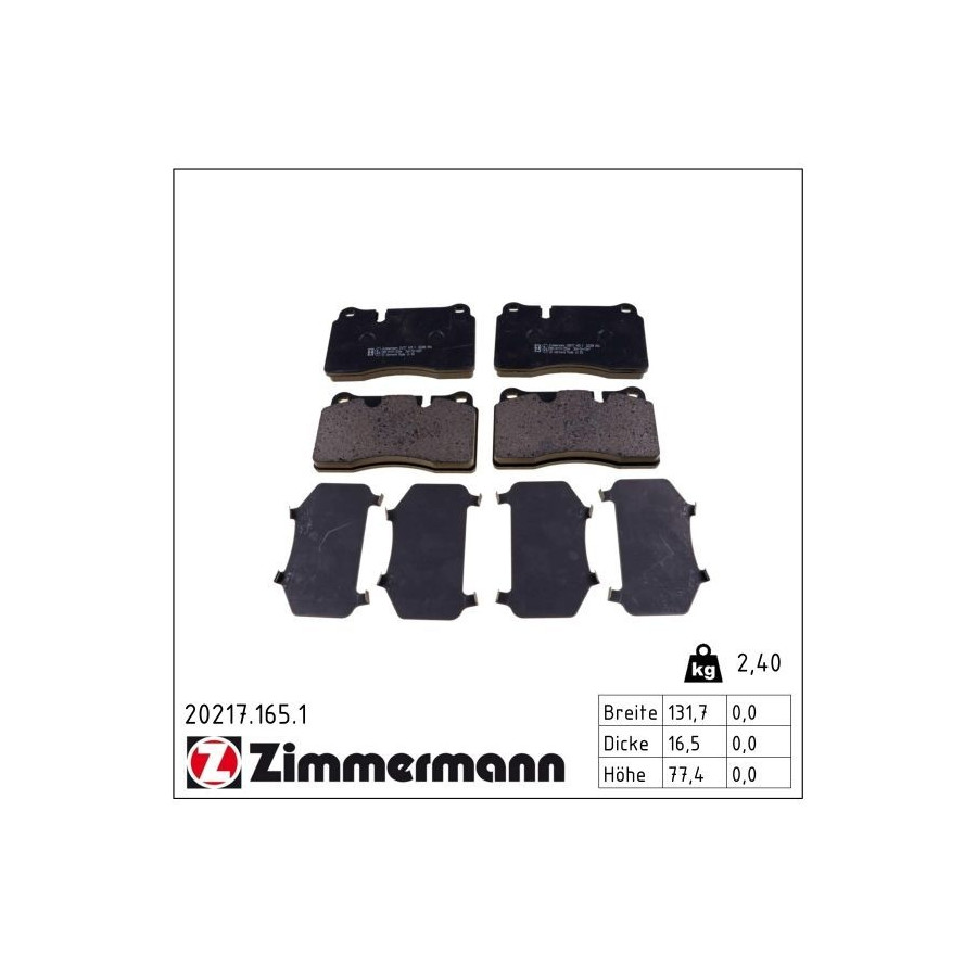 Bromsbeläggssats, skivbroms 20217.165.1 Zimmermann