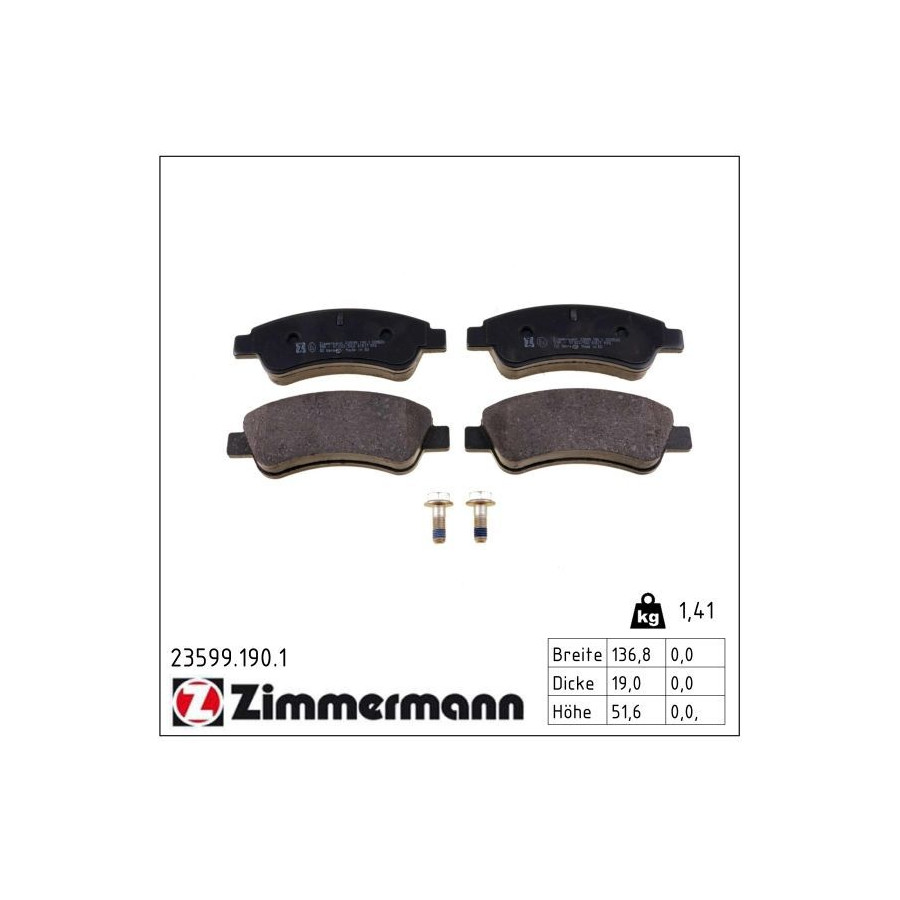 Bromsbeläggssats, skivbroms 23599.190.1 Zimmermann
