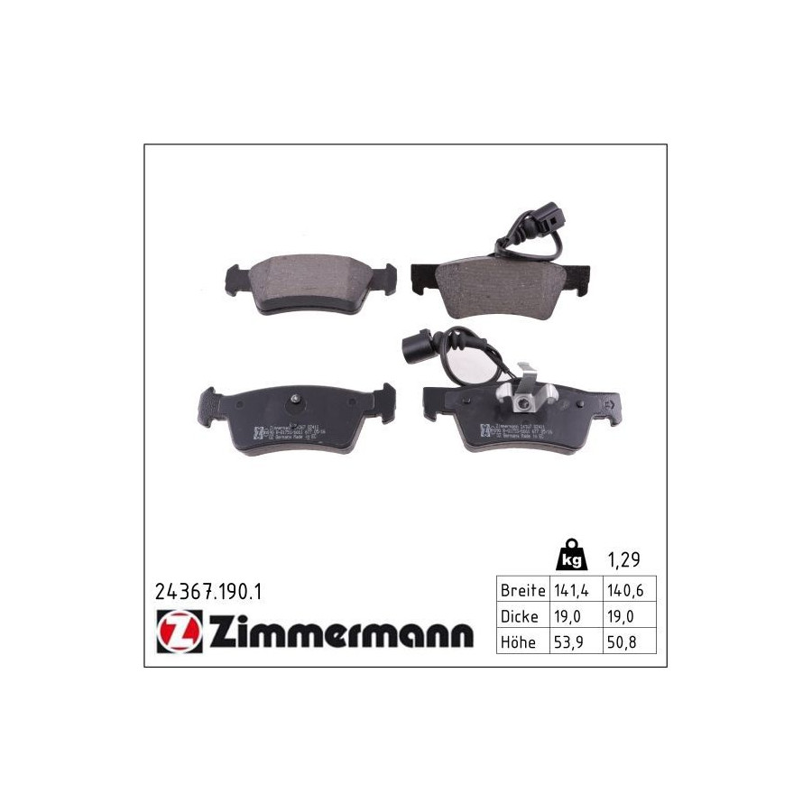 Bromsbeläggssats, skivbroms 24367.190.1 Zimmermann