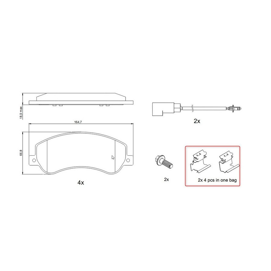 | innehåll | Sats (4 bromsbelägg per axel) |