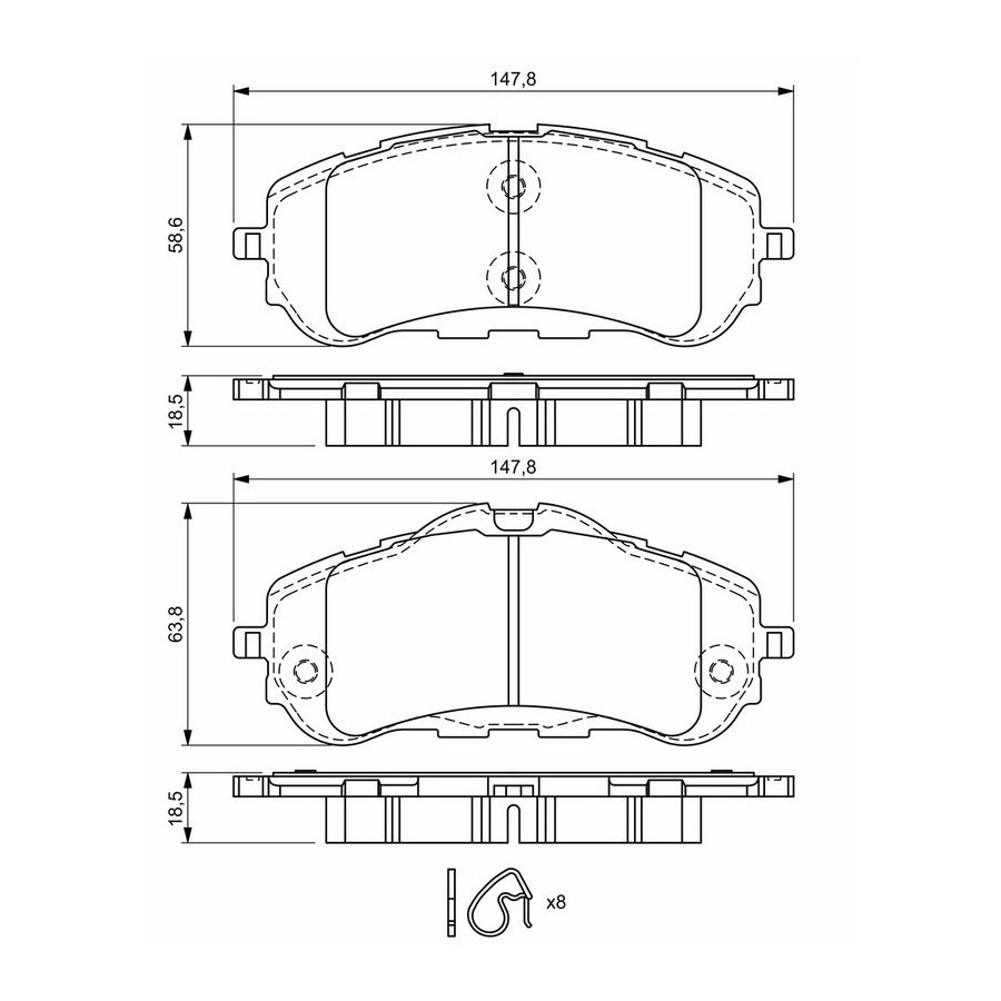 | innehåll | Sats (4 bromsbelägg per axel) |