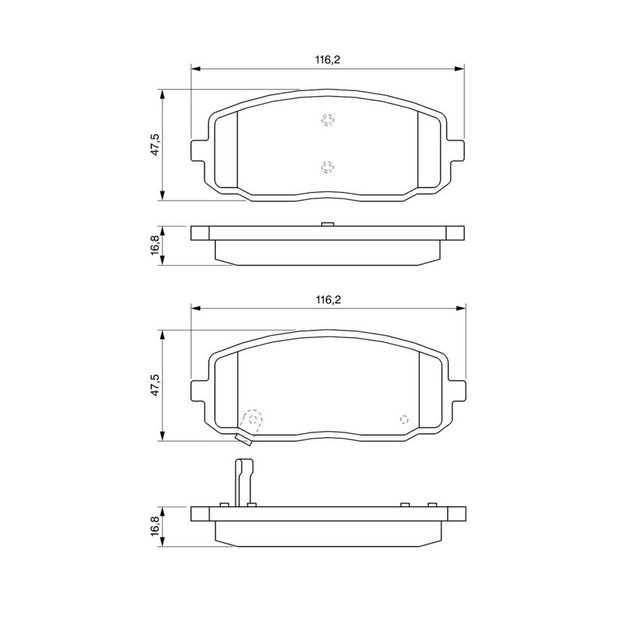 Tillverkare: BOSCH Längd (mm): 168,9 Höjd (mm): 60,2 tjocklek (i mm): 18,4 slitageindikator: med akustisk slitagevarnare Tilläggsartikel / tilläggsinformation 2: med bromsoksskruvar Inspektion Tag: E9 90R - 01107/2054