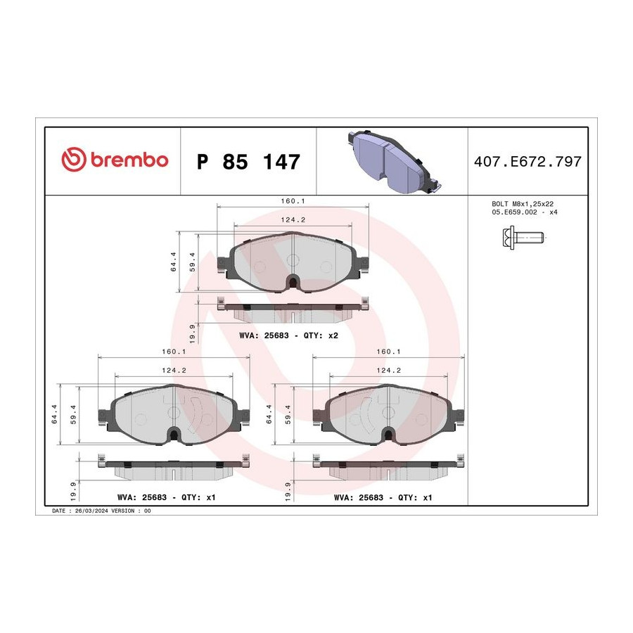 Tillverkare Tillverkare kod Pris A.B.S. 37958 AISIN BPVW-1028 ASHIKA 50-00-0907 ASHUKI P1-1551 ATE 13.0460-2609.2 ATE 13.0470-2609.2 ATE 13.0460-2785.2 ATE 13.0470-2785.2 BELACO BPD1388 BLUE PRINT ADV184233 BOSCH 0 986 494 660 BOSCH 0 986 460 219 BRAXIS AA0557 BRAXIS AA1010 BRECK 25683 00 701 10 BREMBO P 85 147 (denna produkt) BREMSI BP3782 CAR PNT7602 CHAMPION 573390CH CHAMPION 574075CH CIFAM 822-950-0 COMLINE CBP02158 DELPHI LP2698 DELPHI LP3584 DENCKERMANN B111479 DENCKERMANN B111306 DON PCP1423 Dr!ve+ DP1010.10.0934 EUROBRAKE 55022247113 EUROBRAKE 55022247121 FAI AutoParts FPBP563 FAI AutoParts BP427 FAST FT29180 FEBI BILSTEIN 16994 FERODO FDB4433 FERODO FDB5335 FREMAX FBP-1972 FTE 9010675 GALFER B1.G120-1564.2 GALFER B1.G120-1167.2 HELLA 8DB 355 023-171 HERTH+BUSS JAKOPARTS J3600822 ICER 182111-204 JAPANPARTS PA-0907AF JAPKO 500907 JURATEK JCP4265 JURID 573390J JURID 574075J KAMOKA JQ101359 KAVO PARTS KBP-10002 Tillverkare Tillverkare kod Pris LORO 231-01-013 LORO 231-01-325 LPR 05P2067 LYNXauto BD-8064 MAGNETI MARELLI 363916060716 MAGNETI MARELLI 363700485147 MAGNETI MARELLI 363916061162 MAPCO 6634HPS MAPCO 6634 MASTER-SPORT 13046027852N-SET-MS MASTER-SPORT 13046027852T-SET-MS MASTER-SPORT 13046026092N-SET-MSP MASTER-SPORT 13046027852N-SET-MSP MASTER-SPORT 13046027852T-SET-MSP MASTER-SPORT 13046026092N-SET-MS MAXGEAR 19-3592 METELLI 22-0950-0 MEYLE 025 256 8320 MEYLE 025 256 8320/PD MINTEX MDB3827 NK 2247113 NK 2247121 OPTIMAL BP-12618 OPTIMAL BP-12819 PAGID T2502N QUARO QP2013C QUARO QP2013 R BRAKE RB2111-204 RAICAM RA.0993.1 REMSA 1515.01 ROADHOUSE 21515.01 ROTINGER RT 2PD26981 ROTINGER RT 2PD26989HP SASIC 6210113 SKF VKBP 80104 STELLOX 000 420B-SX SWAG 30 91 6994 TEXTAR 2568303 TOPRAN 116 955 TRISCAN 8110 29023 TRUSTING 966.0 TRW GDB2143 VAICO V10-7351 VALEO 302271 VALEO 302271A VALEO 601328 VALEO 601702 WOKING P14153.01 ZIMMERMANN 25683.200.1 fri.tech. 966.0 -