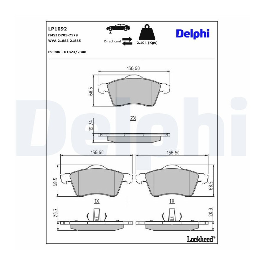 Bromsbeläggssats, skivbroms LP1092 Delphi