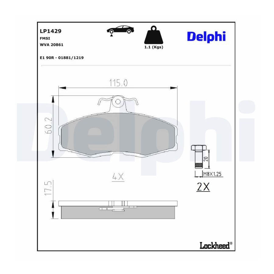 Bromsbeläggssats, skivbroms LP146 Delphi
