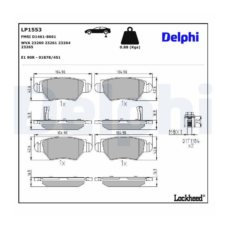 Bromsbeläggssats, skivbroms LP1553 Delphi