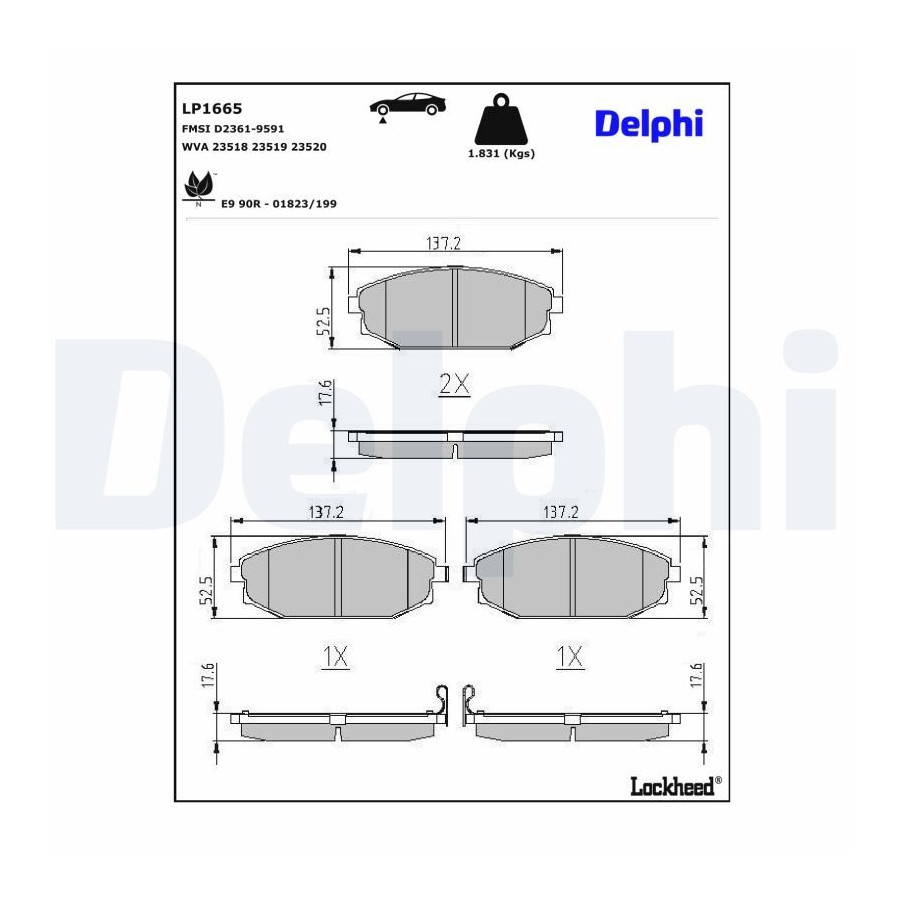 Bromsbeläggssats, skivbroms LP1665 Delphi