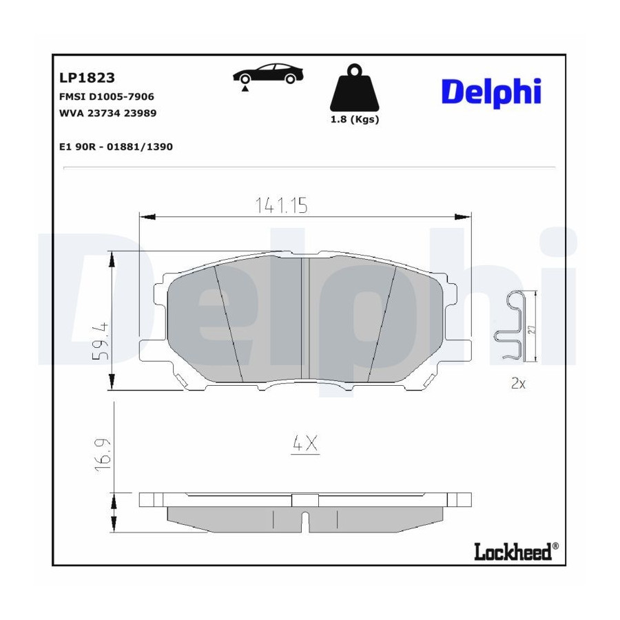 Bromsbeläggssats, skivbroms LP1823 Delphi