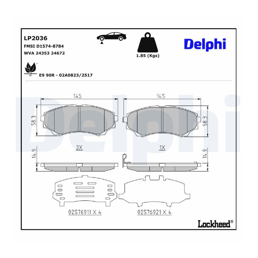 Bromsbeläggssats, skivbroms LP2036 Delphi