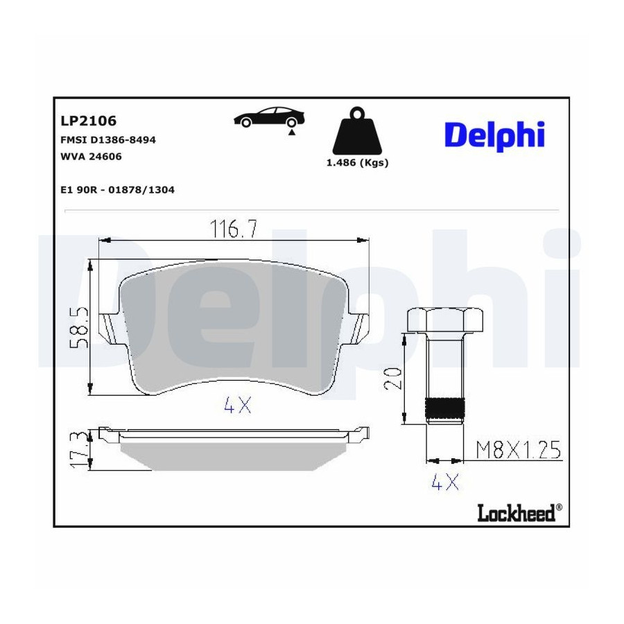 Bromsbeläggssats, skivbroms LP2106 Delphi