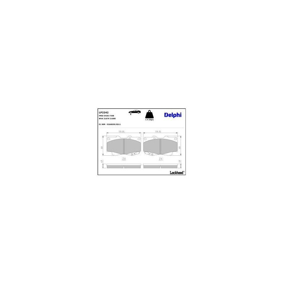 Bromsbeläggssats, skivbroms LP2242 Delphi