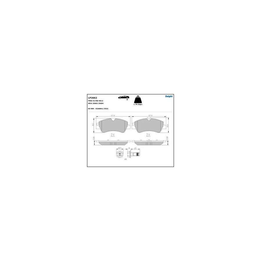 Bromsbeläggssats, skivbroms LP2662 Delphi