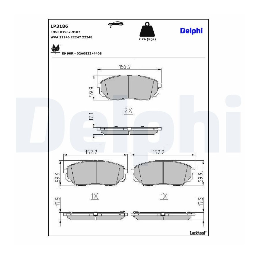 Bromsbeläggssats, skivbroms LP3186 Delphi