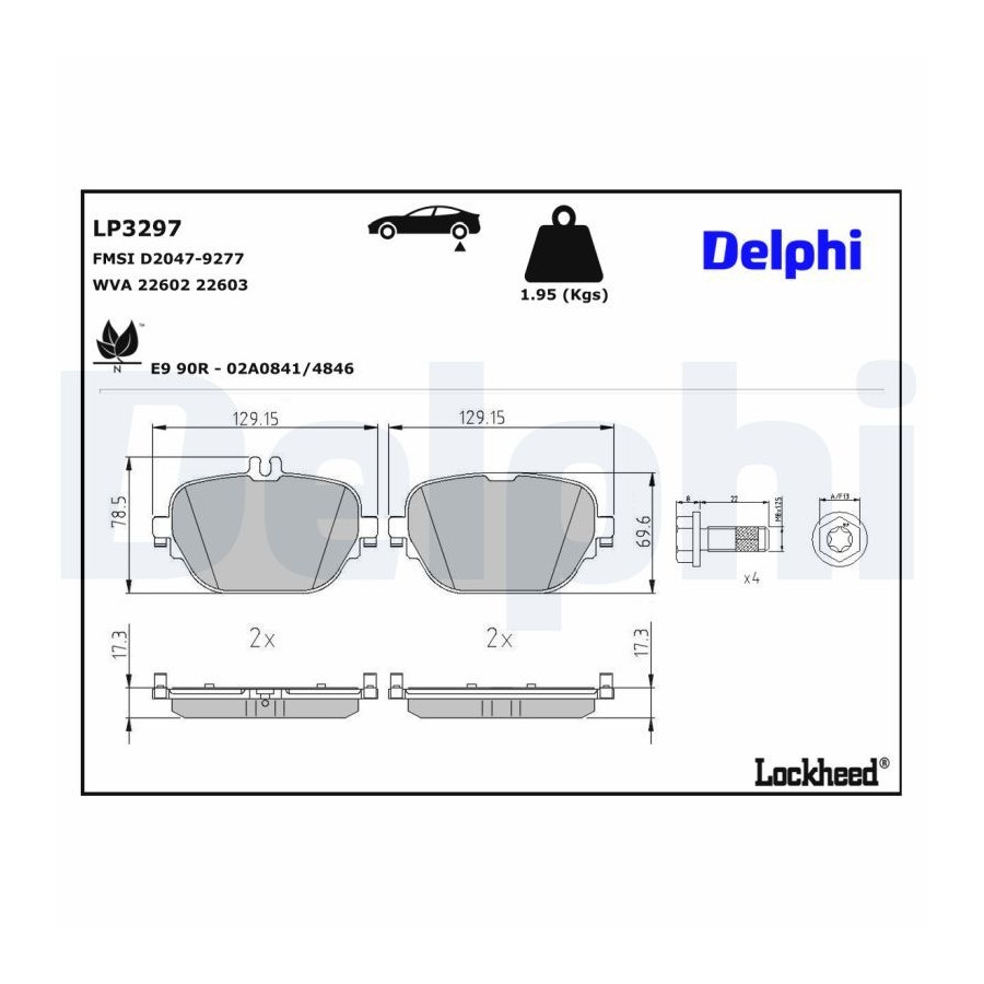 Bromsbeläggssats, skivbroms LP3297 Delphi