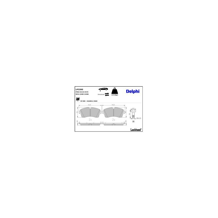 Bromsbeläggssats, skivbroms LP3395 Delphi