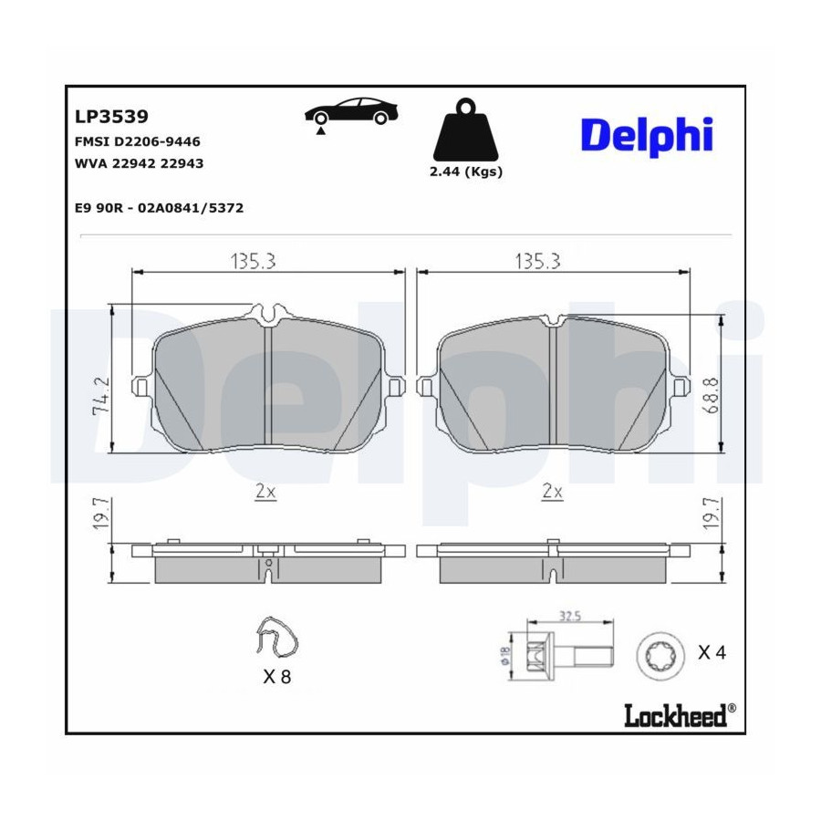 Bromsbeläggssats, skivbroms LP3539 Delphi