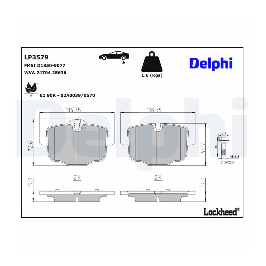 Bromsbeläggssats, skivbroms LP3579 Delphi