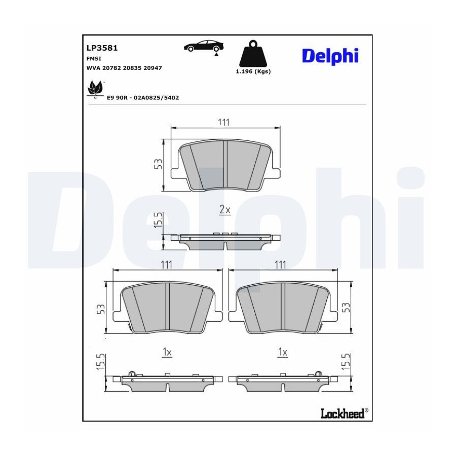 Bromsbeläggssats, skivbroms LP3581 Delphi