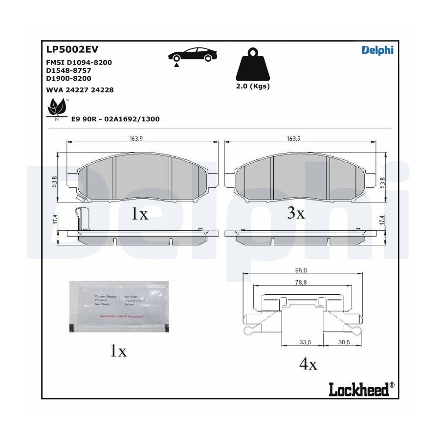 Bromsbeläggssats, skivbroms LP5002EV Delphi
