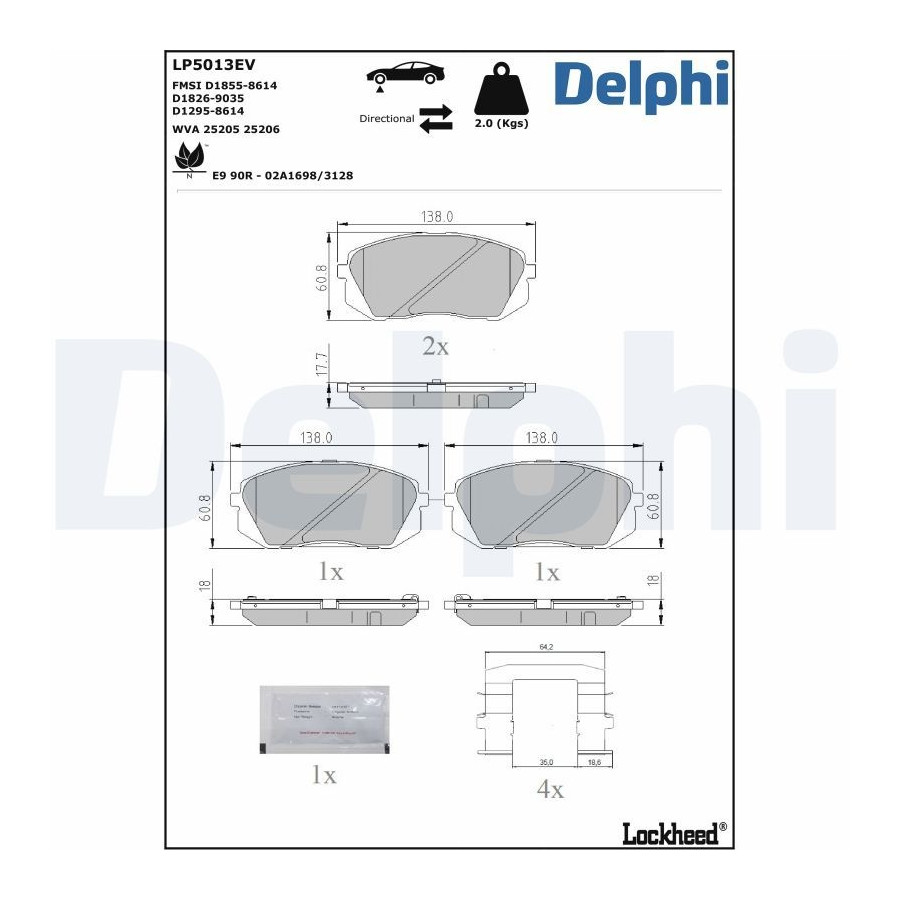 Bromsbeläggssats, skivbroms LP5013EV Delphi