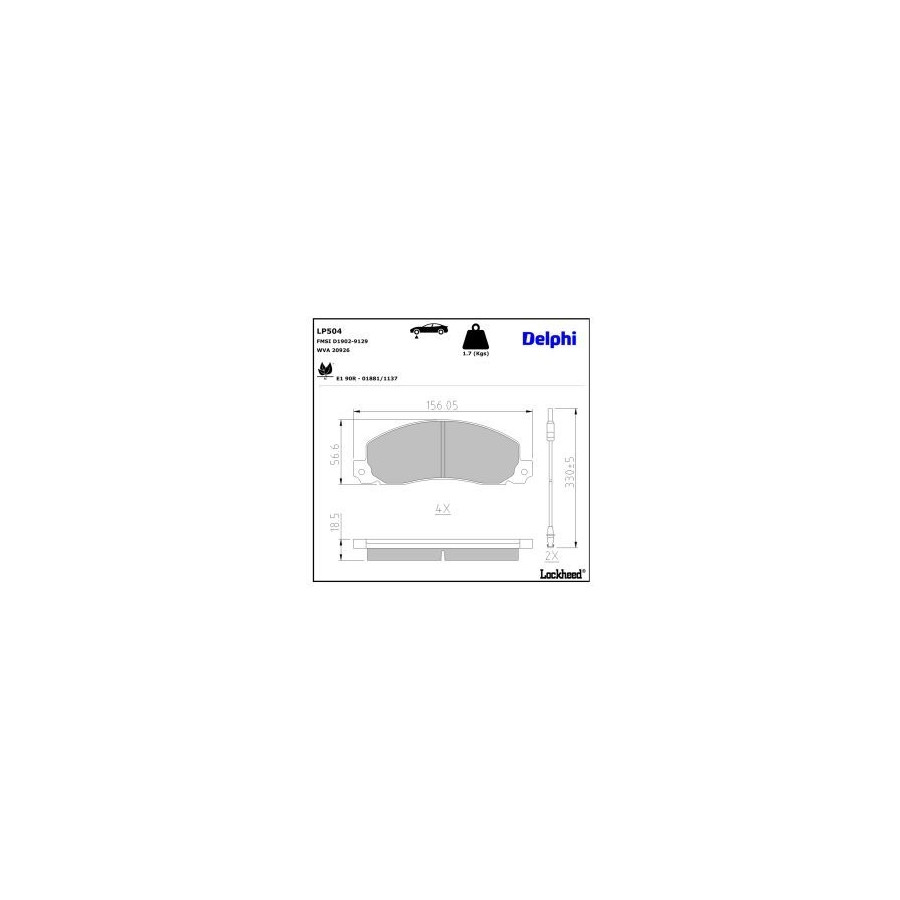 Bromsbeläggssats, skivbroms LP504 Delphi