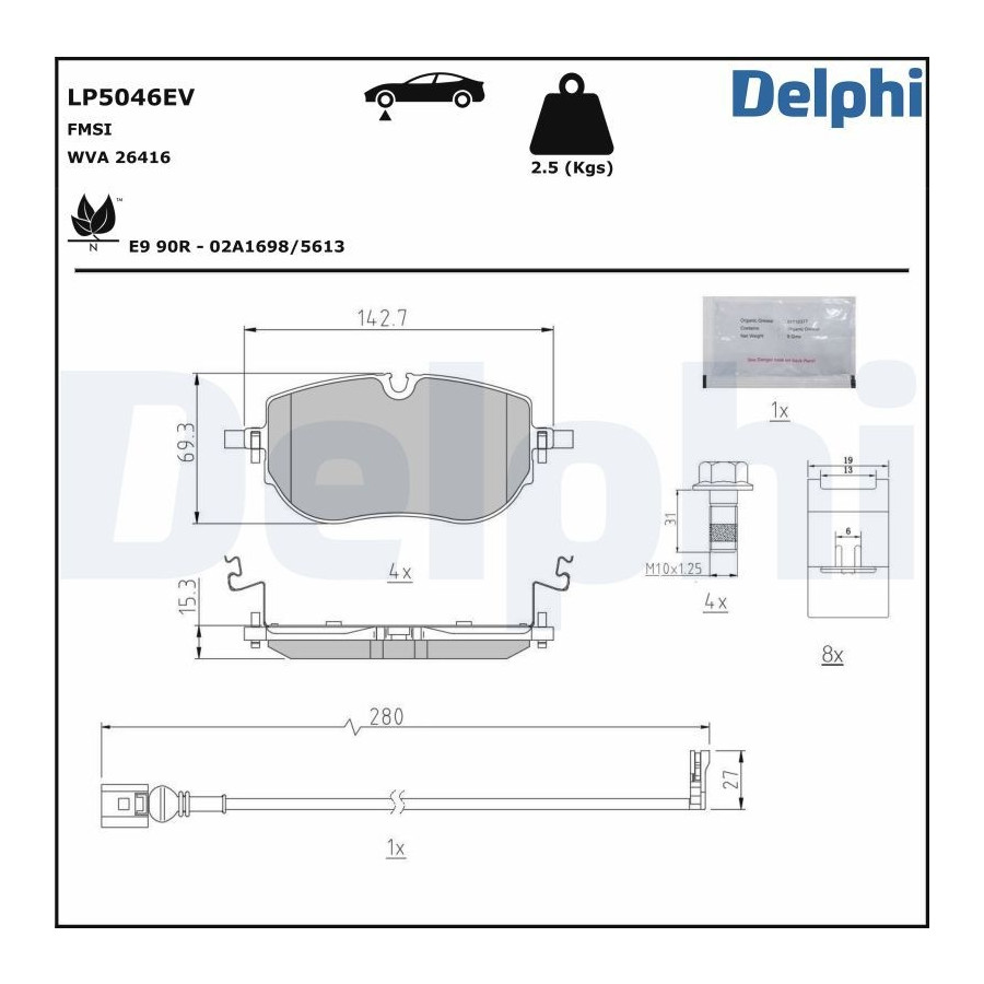 Bromsbeläggssats, skivbroms LP5046EV Delphi