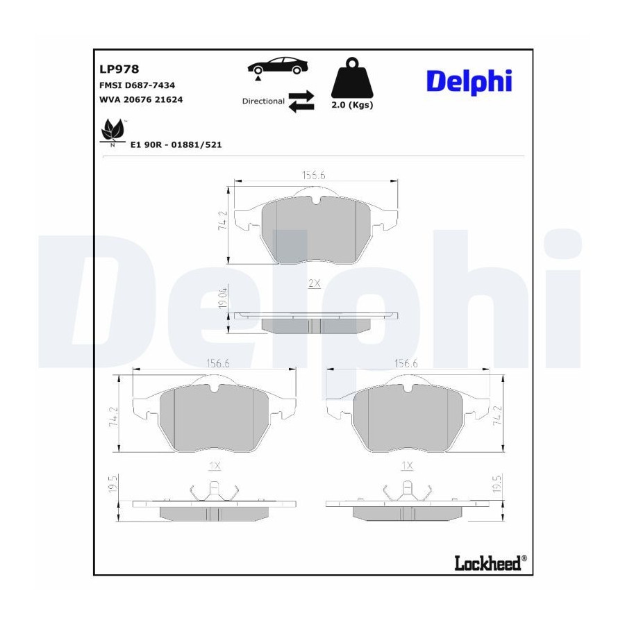Bromsbeläggssats, skivbroms LP978 Delphi