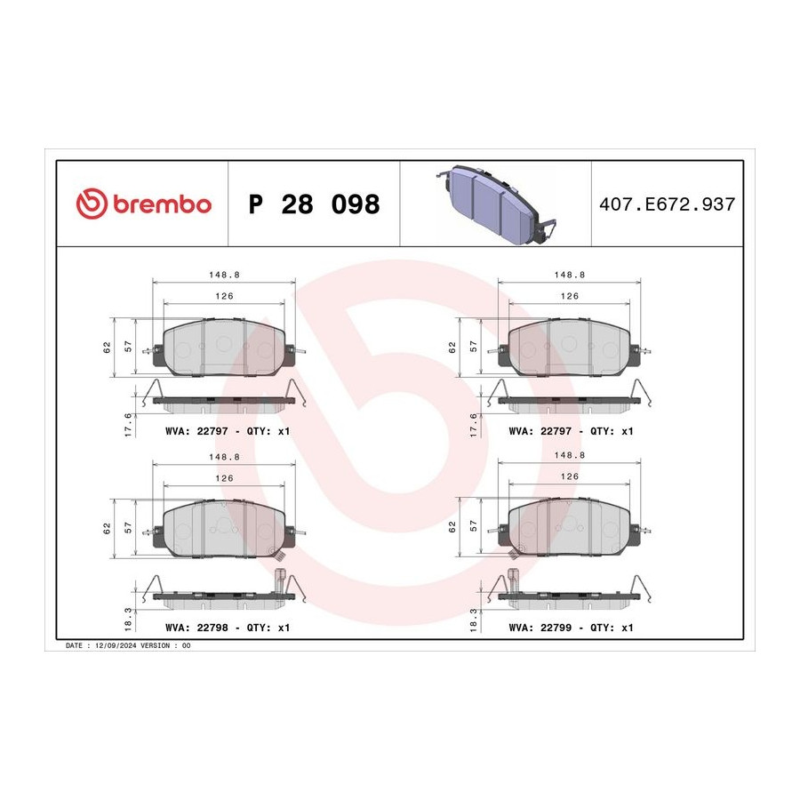 Bromsbeläggssats, skivbroms P 28 098 Brembo