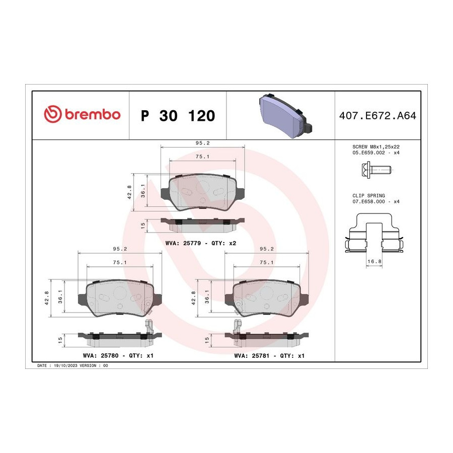 Bromsbeläggssats, skivbroms P 30 120 Brembo
