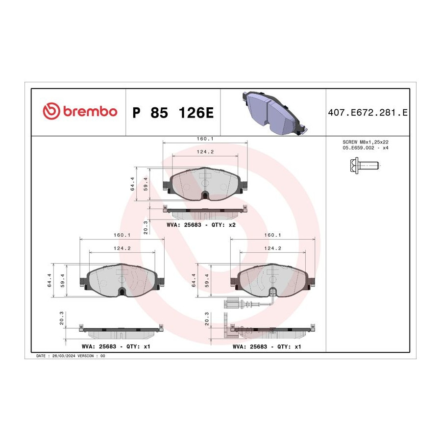 Bromsbeläggssats, skivbroms P 85 126E Brembo
