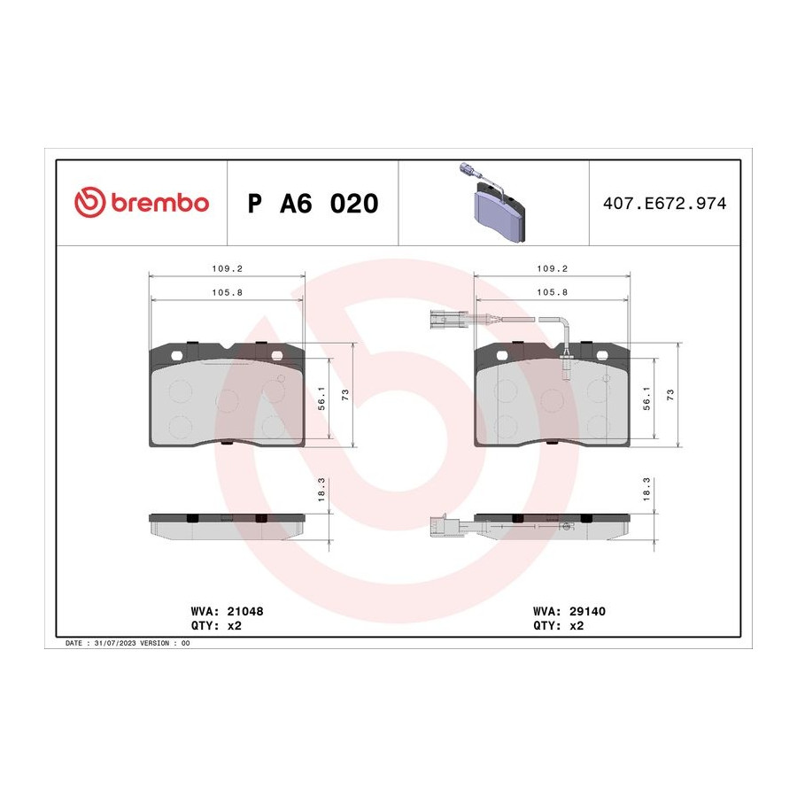 BREMBO | P A6 020 | (denna produkt) |