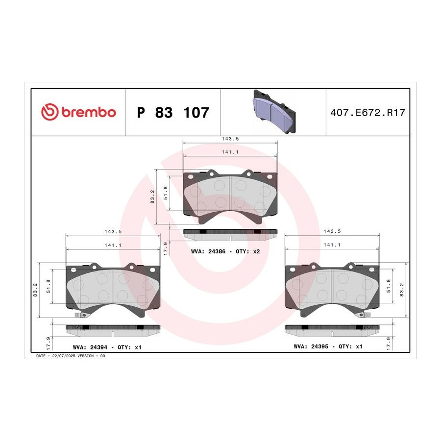 Tillverkare Tillverkare kod Pris A.B.S. 37701 AISIN SN139P AISIN A1N156 AISIN BPTO-1024 ASHIKA 50-02-272 ASHUKI T112-92 ATE 13.0460-5618.2 BELACO BPD2145 BLUE PRINT ADT342142 BLUE PRINT ADT342175 BORG & BECK BBP2249 BOSCH 0 986 494 449 BREMBO P83107 (denna produkt) BREMSI BP3381 CAR PNT8141 CIFAM 822-821-0 COMLINE CBP31661 DELPHI LP2134 DENCKERMANN B111083 DON PCP1210 Dr!ve+ DP1010.10.1477 EUROBRAKE 55022245103 FEBI BILSTEIN 16726 FEBI BILSTEIN 170785 FERODO FDB4229 FREMAX FBP-1817 FTE 9010812 GALFER B1.G102-1487.2 GIRLING 6135249 HELLA 8DB 355 013-151 HERTH+BUSS JAKOPARTS J3602129 ICER 181874 JAPANPARTS PA-272AF JAPKO 50272 JURATEK JCP8608 JURID 572599JC JURID 572599J KAISHIN FK2278 KAMOKA JQ101324 Tillverkare Tillverkare kod Pris KAVO PARTS KBP-9098 KAWE 1271 02 LPR 05P1418 MAGNETI MARELLI 363700483107 MALÒ 1051320 MASTER-SPORT 13046056182N-SET-MS MASTER-SPORT 13046135242N-SET-MS MASTER-SPORT 13046056182N-SET-MSP MASTER-SPORT 13046135242N-SET-MSP MAXGEAR 19-1471 METELLI 22-0821-0 MEYLE 025 243 8618/W MINTEX MDB2878 MINTEX MDB2878MX MOTAQUIP LVXL1701 NATIONAL NP3144 NIPPARTS N3602136 NK 2245103 OPTIMAL BP-12397 PAGID T1681N QUINTON HAZELL BP1737 R BRAKE RB1874 REMSA 1271.02 ROADHOUSE 21271.02 ROTINGER RT 2PD21340 SCT Germany SP 400 PR SKF VKBP 80635 A STELLOX 000 019B-SX SWAG 81 91 6726 TEXTAR 2438601 TRISCAN 8110 13098 TRUSTING 837.0 TRW GDB3524 VALEO 601339 VALEO 301339 WOKING P13713.02 ZIMMERMANN 24386.180.1 fri.tech. 837.0 -
