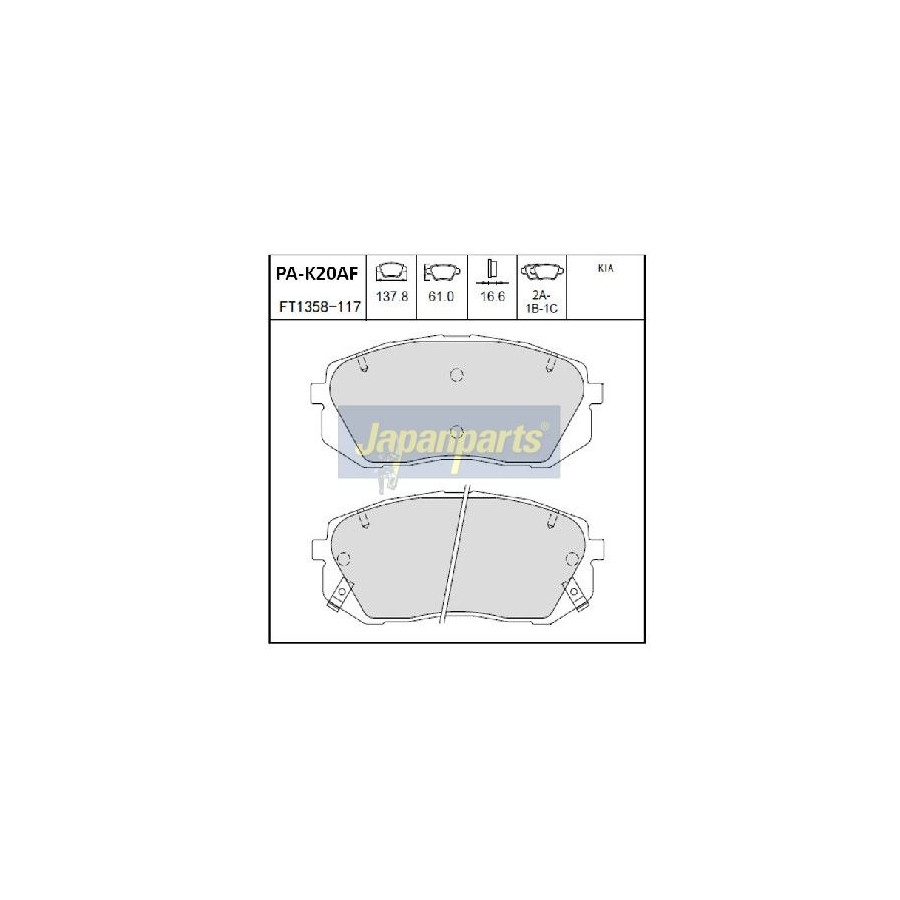 Bromsbeläggssats, skivbroms PA-K20AF Japanparts