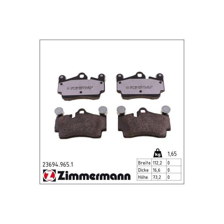 Bromsbeläggssats, skivbroms rd:z 23694.965.1 Zimmermann