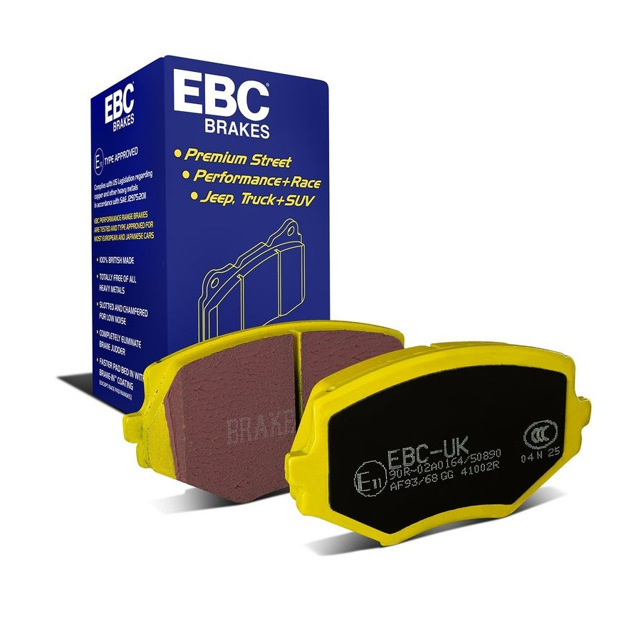 EBC Yellowstuff-bromsbelägg ger din bil en större bromskraft. Dessa block kan användas som ersättning för de ursprungliga bromsbeläggarna och är en tydlig uppgradering jämfört med â?standardâ? bromsbelägg!
