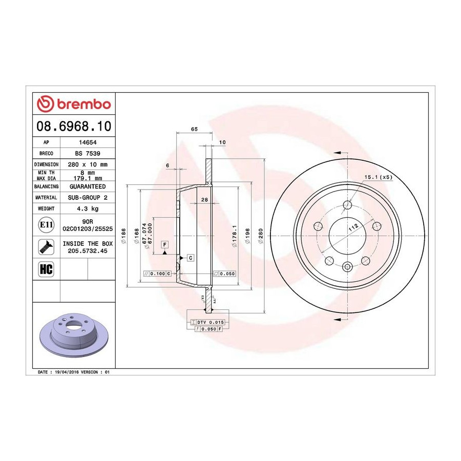 Brembo sportbromsskivor är gjutna, färdiga och testade av Brembo själv, så att exceptionell kvalitet kan garanteras. Varje nyproducerad Brembo bromsskiva har alltså samma exceptionella kvalitet som den tidigare.