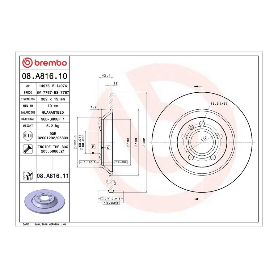 | BREMBO | 08.A816.10 | (denna produkt) |
