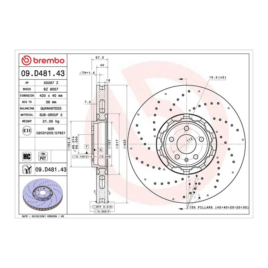 | Bromsskivetyp | Perforerad/invändig ventilation | Tvådelad bromsskiva | Bromsskivhuvud i aluminium |
