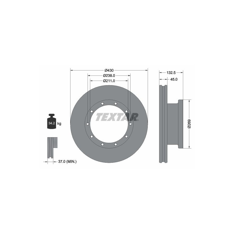 | Bromsskivans tjocklek (mm) | 45 |