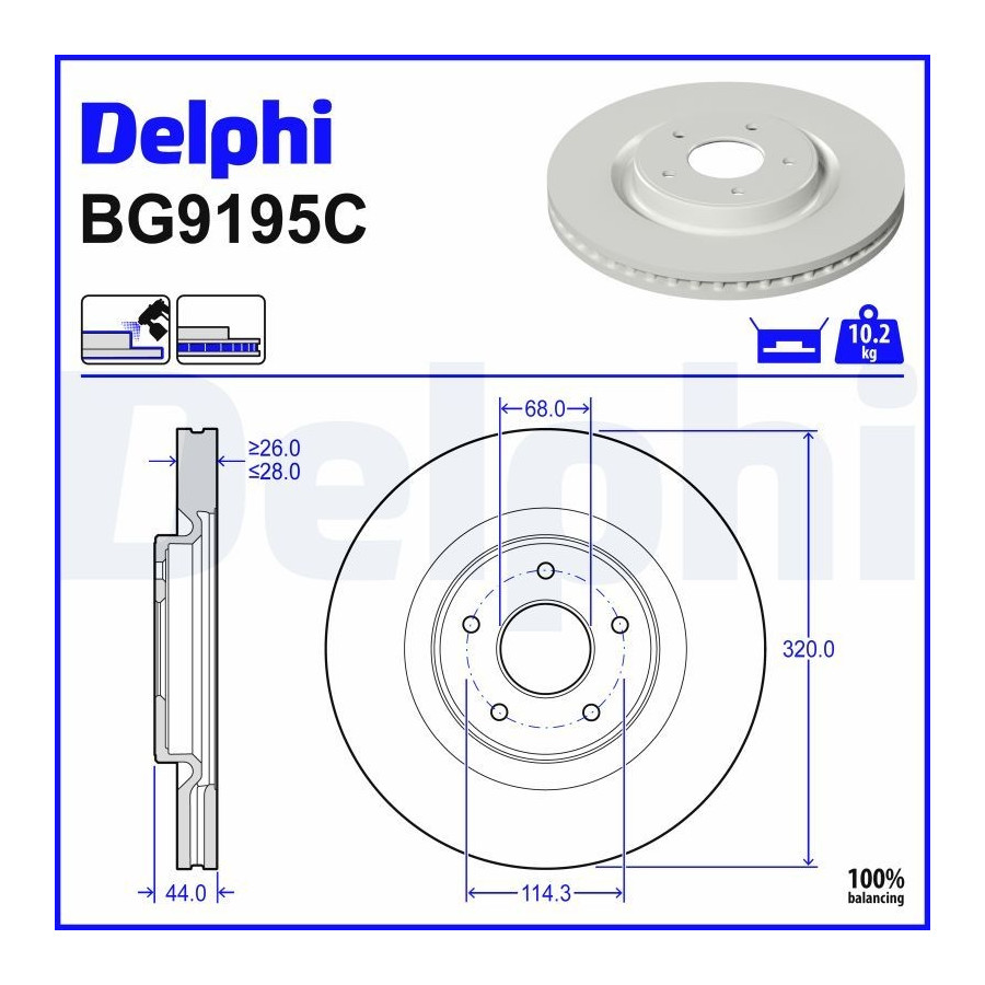 Bromsskiva BG9195C Delphi