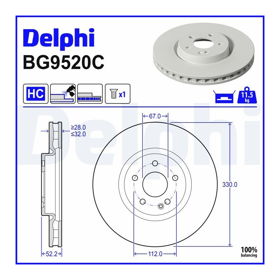 Bromsskiva BG9520C Delphi