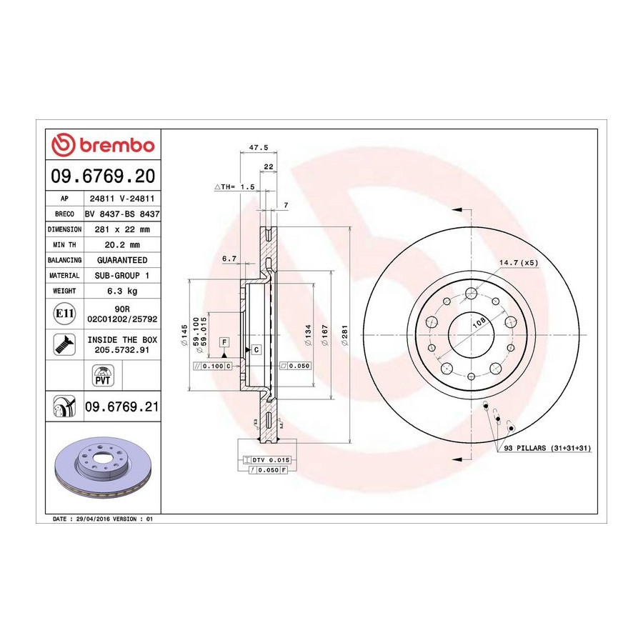Bromsskiva COATED DISC LINE 09.6769.21 Brembo