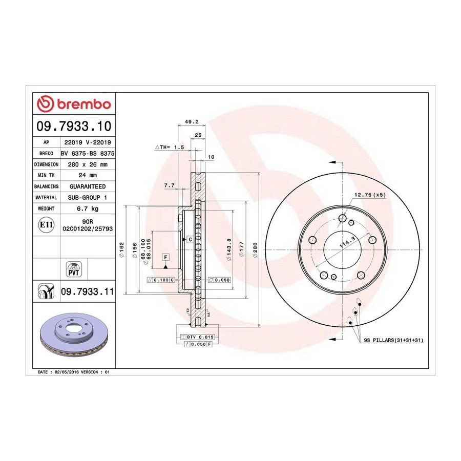 Brembo sportbromsskivor är gjutna, färdiga och testade av Brembo själv, så att exceptionell kvalitet kan garanteras. Varje nyproducerad Brembo bromsskiva har alltså samma exceptionella kvalitet som den tidigare.