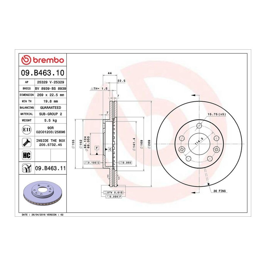 | BREMBO | 09.B463.11 | (denna produkt) |
