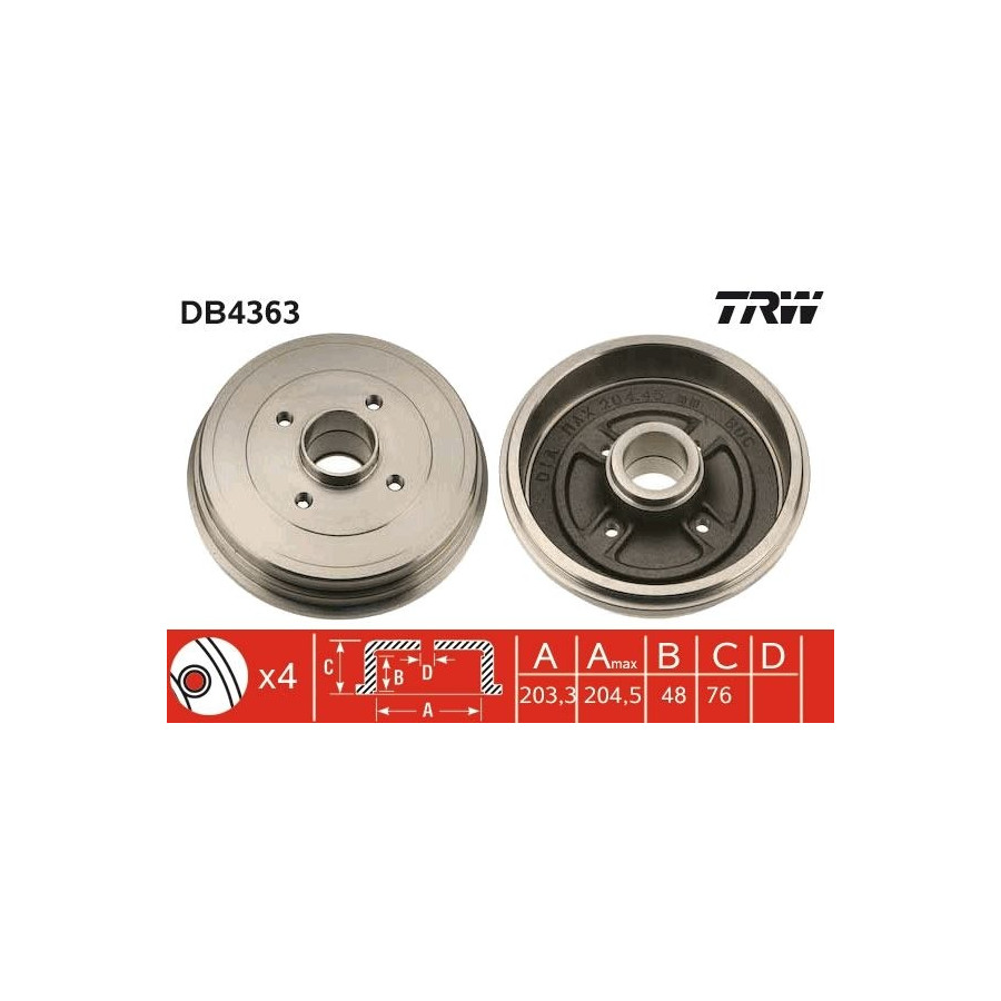 Hålantal 4 Hålkrets-Ø [mm] 100 Garanti 2 år Bromstrummans diameter inuti [mm] 203 Intern bromstrumma höjd [mm] 48 max. storlek på bromstrumman [mm] 204,45 Liknande produkter från andra tillverkare