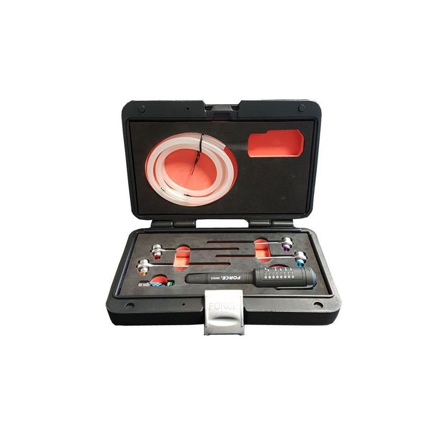 4-delad bromsluftningsnyckelsats med inbyggd, färgkodad sexkant. Lämplig för luftning av bromsar och hydrauliska kopplingar utan att demontera hjulen. Denna sats innehåller nyckelstorlekarna 8, 9, 10 och 11 mm. Den 1,2 meter långa silikonslangen är utrustad med en säkerhetsventil. Bromsvätsketestaren är utformad för att testa vattenhalten i bromsvätska och är lämplig för DOT3, DOT4 och DOT5.